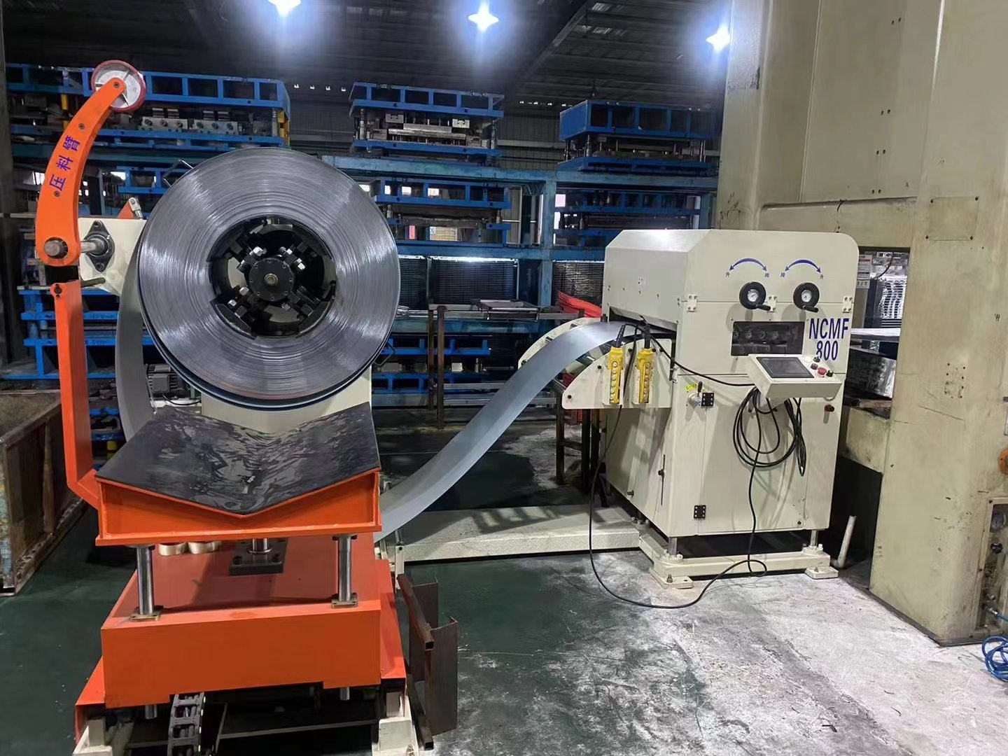 This equipment is a model specifically designed for the uncoiling and leveling functions of automated feeding of medium-to-thin plates in stamping processes. The gripping wheel rollers feature plow-blade sandblasted electroplated hard chrome surfacing, effectively increasing friction between the material and the rollers to prevent slippage during straightening and feeding, thereby achieving high feeding accuracy. The machine employs imported components, pneumatic elements, bearings, and electrical parts. The control system is equipped with a touch screen, offering large‑capacity memory for user product parameter information and a comprehensive equipment fault alarm system, ensuring longer machine service life, higher working efficiency, and more reliable safety performance.